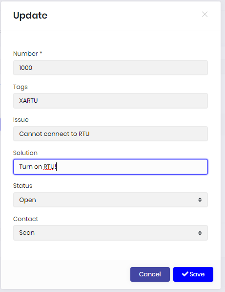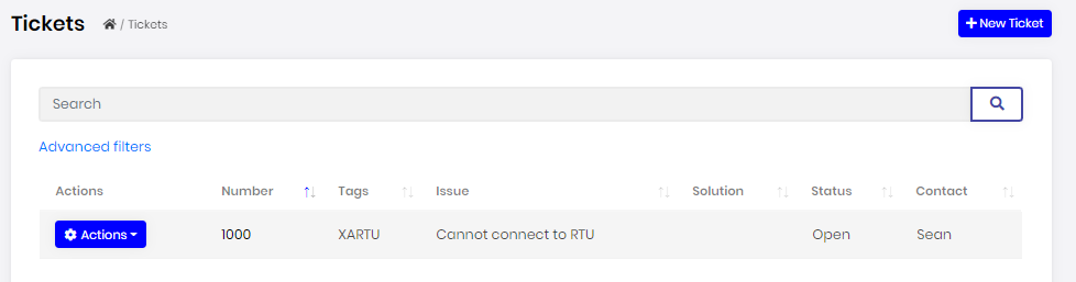 - After creating the Ticket, I then click Actions -> Edit, set the Solution to "Turn on RTU."