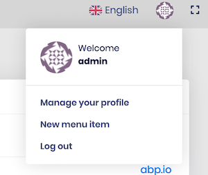 app.component.tsfile to replace user nav element as shown below:import { ABP, // imported ApplicationConfiguration, // imported AuthService, // imported ConfigState, // imported LazyLoadService, LOADING_STRATEGY, SessionState, // imported } from '@abp/ng.core'; import { Component, OnInit, TemplateRef, ViewChild } from '@angular/core'; // imported TemplateRef and ViewChild import { Router } from '@angular/router'; // added this line import { Select, Store } from '@ngxs/store'; // added this line import { forkJoin, Observable } from 'rxjs'; // imported Observable import { AddNavigationElement, eNavigationElementNames } from '@volo/abp.ng.theme.lepton'; // added this line @Component({ selector: 'app-root', template: ` <abp-loader-bar></abp-loader-bar> <router-outlet></router-outlet> <!-- Added below template --> <ng-template #currentUser> <li class="nav-item" *ngIf="currentUser$ | async as user"> <ng-template #loginBtn> <a role="button" routerLink="/account/login" class="btn ">{{ 'AbpAccount::Login' | abpLocalization }}</a> </ng-template> <div *ngIf="user.isAuthenticated; else loginBtn" class="dropdown btn-group" ngbDropdown> <a ngbDropdownToggle class="btn pointer"> <abp-current-user-image [currentUser]="user" classes="user-avatar" ></abp-current-user-image> <span class="d-lg-none ml-1"> <small *ngIf="(selectedTenant$ | async)?.name as tenantName" ><i>{{ tenantName }}</i></small > <span>{{ user.userName }}</span> </span> </a> <div ngbDropdownMenu class="dropdown-menu dropdown-menu-right"> <div class="p-2 row"> <div class="pr-0 col col-auto"> <abp-current-user-image [currentUser]="user" classes="user-avatar-big" ></abp-current-user-image> </div> <div class="pl-2 col"> <span>{{ 'AbpAccount::Welcome' | abpLocalization }}</span ><br /> <small *ngIf="(selectedTenant$ | async)?.name as tenantName" ><i>{{ tenantName }}</i></small > <strong>{{ user.userName }}</strong> </div> </div> <div class="dropdown-divider"></div> <a class="dropdown-item pointer" routerLink="/account/manage-profile">{{ 'AbpAccount::ManageYourProfile' | abpLocalization }}</a> <a class="dropdown-item pointer"> New menu item</a> <a class="dropdown-item pointer" id="logout" (click)="logout()">{{ 'AbpUi::Logout' | abpLocalization }}</a> </div> </div> </li> </ng-template> `, }) export class AppComponent implements OnInit { // added @Select(ConfigState.getOne('currentUser')) currentUser$: Observable<ApplicationConfiguration.CurrentUser>; // added @Select(SessionState.getTenant) selectedTenant$: Observable<ABP.BasicItem>; // added @ViewChild('currentUser', { static: false }) currentUserTemplate: TemplateRef<any>; constructor( private lazyLoadService: LazyLoadService, private router: Router, // injected private authService: AuthService, // injected private store: Store, // injected ) {} ngOnInit() { forkJoin([ this.lazyLoadService.load(LOADING_STRATEGY.PrependAnonymousStyleToHead('flag-icon.min.css')), this.lazyLoadService.load( LOADING_STRATEGY.PrependAnonymousStyleToHead('fontawesome-v4-shims.min.css'), ), this.lazyLoadService.load( LOADING_STRATEGY.PrependAnonymousStyleToHead('fontawesome-all.min.css'), ), ]).subscribe(); } // added ngAfterViewInit() { this.store.dispatch( new AddNavigationElement({ element: this.currentUserTemplate, name: eNavigationElementNames.User, order: 5, }), ); } // added logout() { this.authService.logout().subscribe(() => { this.router.navigate(['/'], { state: { redirectUrl: this.router.url } }); }); } }We will work to replace the menu elements easily. Probably this document will be updated and covered the new way for replacement in v2.9.