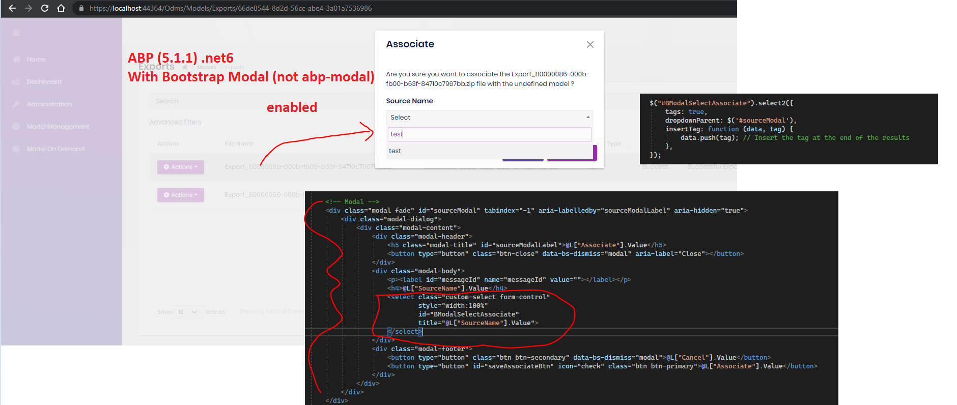 After we upgrated ABP version to 5.1.1. We have a problem about select2 enabled on abp-modal. But it works on normal page, it doesn't work on the abp-modal only.