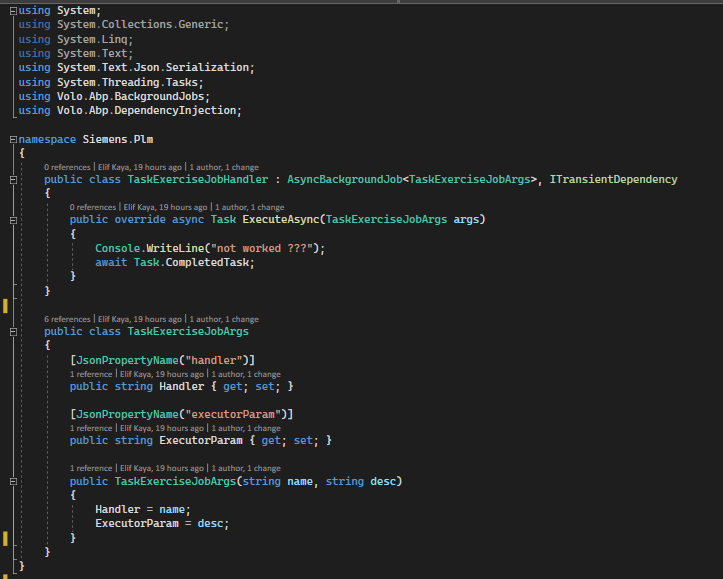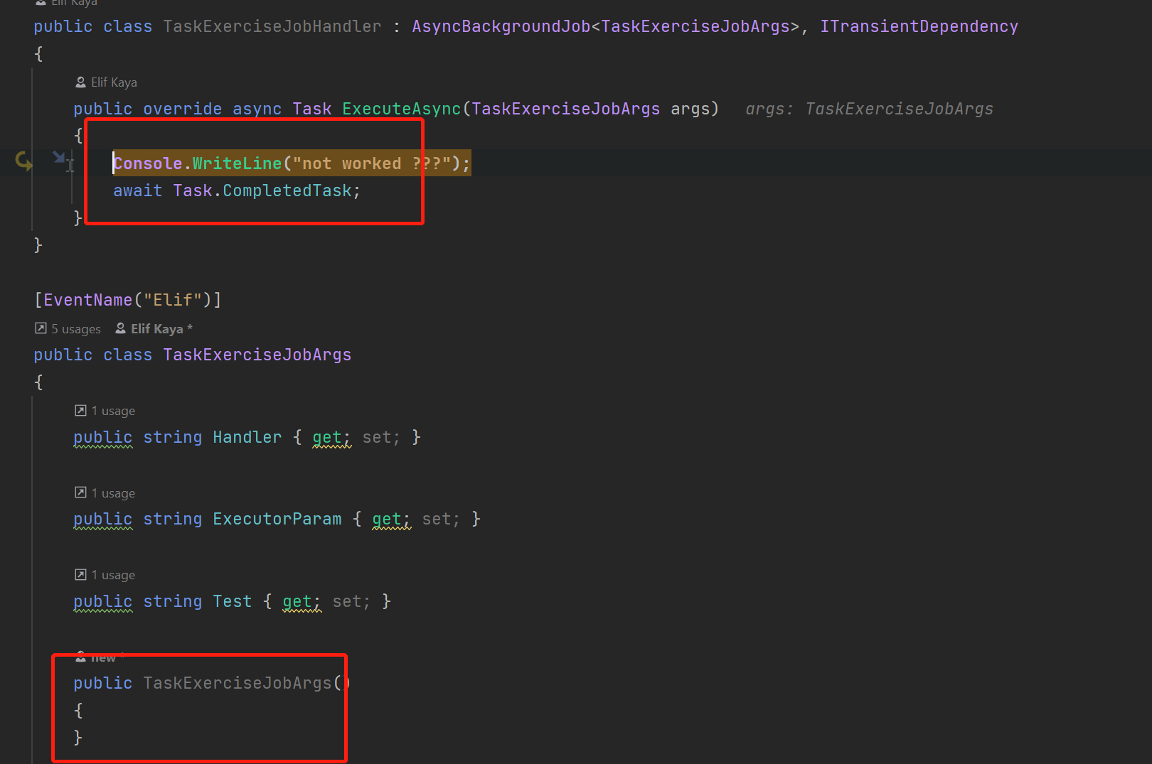 Yes, when I set this property as a False, Job handlers does not execute. But, I could send my message to RabbitMq and then show its details. When I use as a True, I can not push my message in RabbitMq. Why can't I push a message while the BackgroundJob is still running? Can you share a working sample code with me?