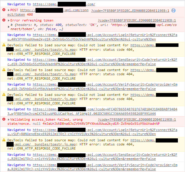 wrong state/nonceerror. But after navigating to the identity server, the identity server didn't ask for credentials because the user was still authenticated in the identity server. I opened an issue in the abp repo. You can follow the status of this issue.