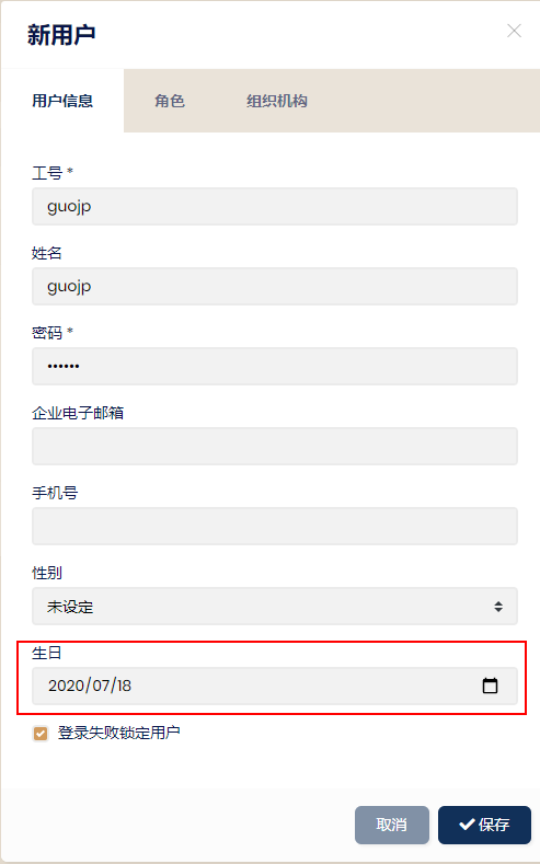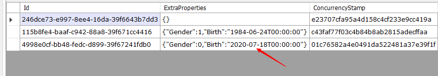The create form works well, and I can see the birth value is stored to the DB successfully: