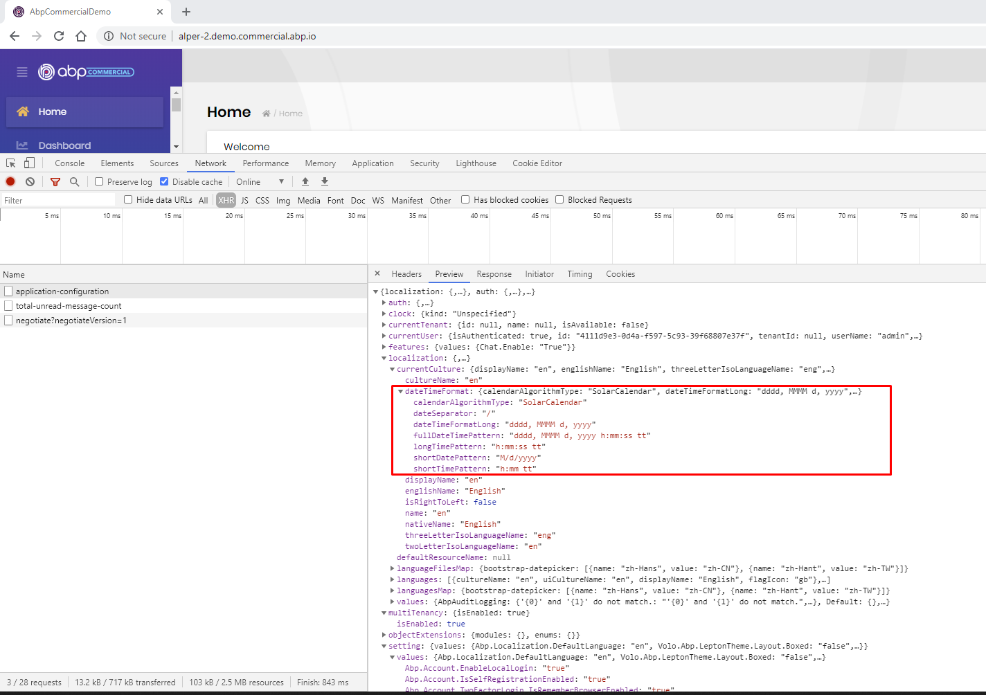 yes, you can find current user's timezone and datetşne format. after login, Angular client makes request to http://alper-2.demo.commercial.abp.io/api/abp/application-configuration and gets user's culture & time zone & date time format etc.. see this