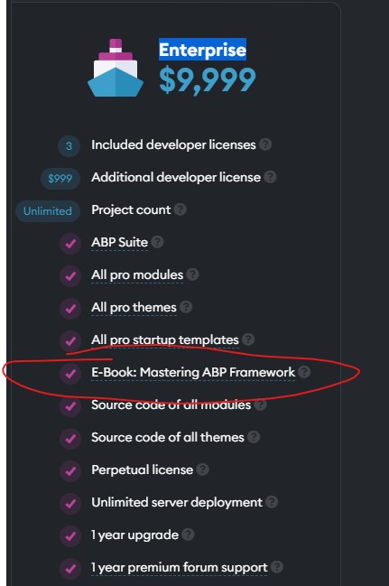 Hi, all new (bought a new license after the 16th of January) customers (owners of the license) can download the ABP Framework book for free from the https://commercial.abp.io/my-organizations/ .