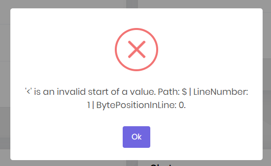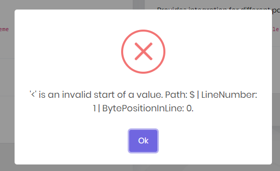 '<' is an invalid start of a value. Path: $ | LineNumber: 1 | BytePositionInLine: 0.