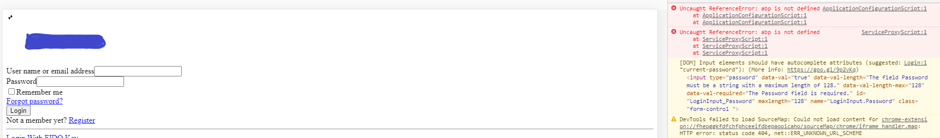 2020-08-11 10:11:40.627 +00:00 [INF] Executing endpoint '/Account/Login' 2020-08-11 10:11:40.628 +00:00 [INF] Route matched with {page = "/Account/Login", action = "", controller = "", area = ""}. Executing page /Account/Login 2020-08-11 10:11:40.636 +00:00 [INF] Executing handler method Volo.Abp.Account.Public.Web.Pages.Account.LoginModel.OnGetAsync - ModelState is "Valid" 2020-08-11 10:11:40.638 +00:00 [INF] Executed handler method OnGetAsync, returned result . 2020-08-11 10:11:40.640 +00:00 [INF] Executing an implicit handler method - ModelState is "Valid" 2020-08-11 10:11:40.642 +00:00 [INF] Executed an implicit handler method, returned result Microsoft.AspNetCore.Mvc.RazorPages.PageResult. 2020-08-11 10:11:40.708 +00:00 [INF] Executed page /Account/Login in 78.1705ms 2020-08-11 10:11:40.714 +00:00 [INF] Executed endpoint '/Account/Login' 2020-08-11 10:11:40.715 +00:00 [INF] Request finished in 99.3678ms 200 text/html; charset=utf-8 2020-08-11 10:11:41.209 +00:00 [INF] Request starting HTTP/1.1 GET https://domain/Abp/ApplicationConfigurationScript