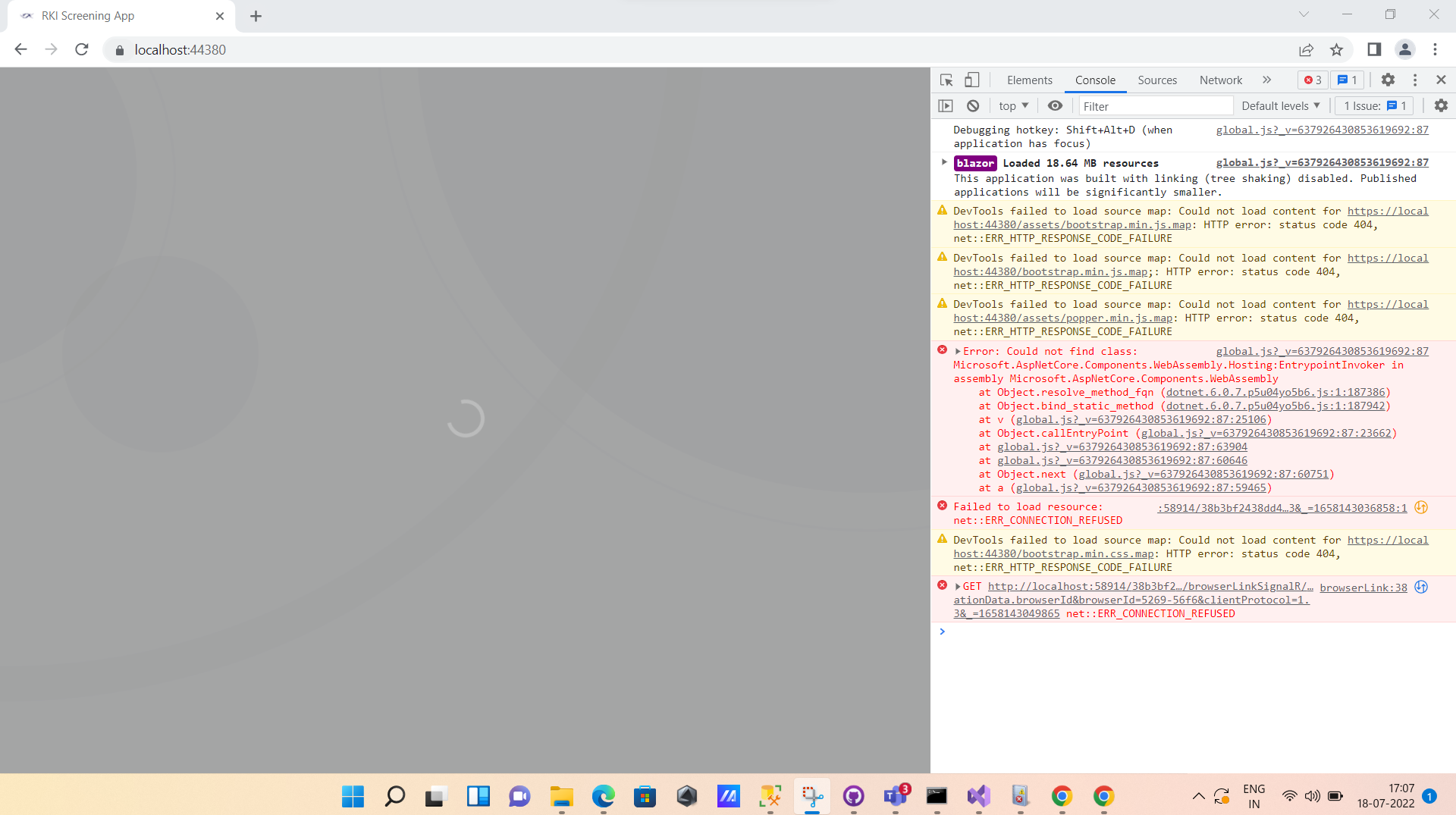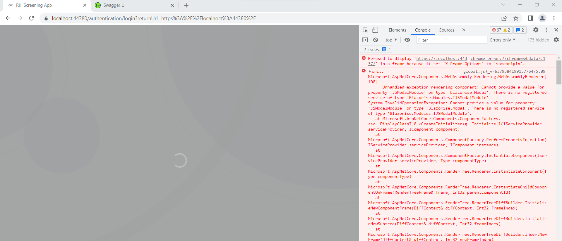 I have updated my abp and .net framework versions to latest one like 4.4.3 abp versions to 5.3 with .net 6. Swagger is working fine but getting error while running blazor project. Please see the below screenshot for the same.