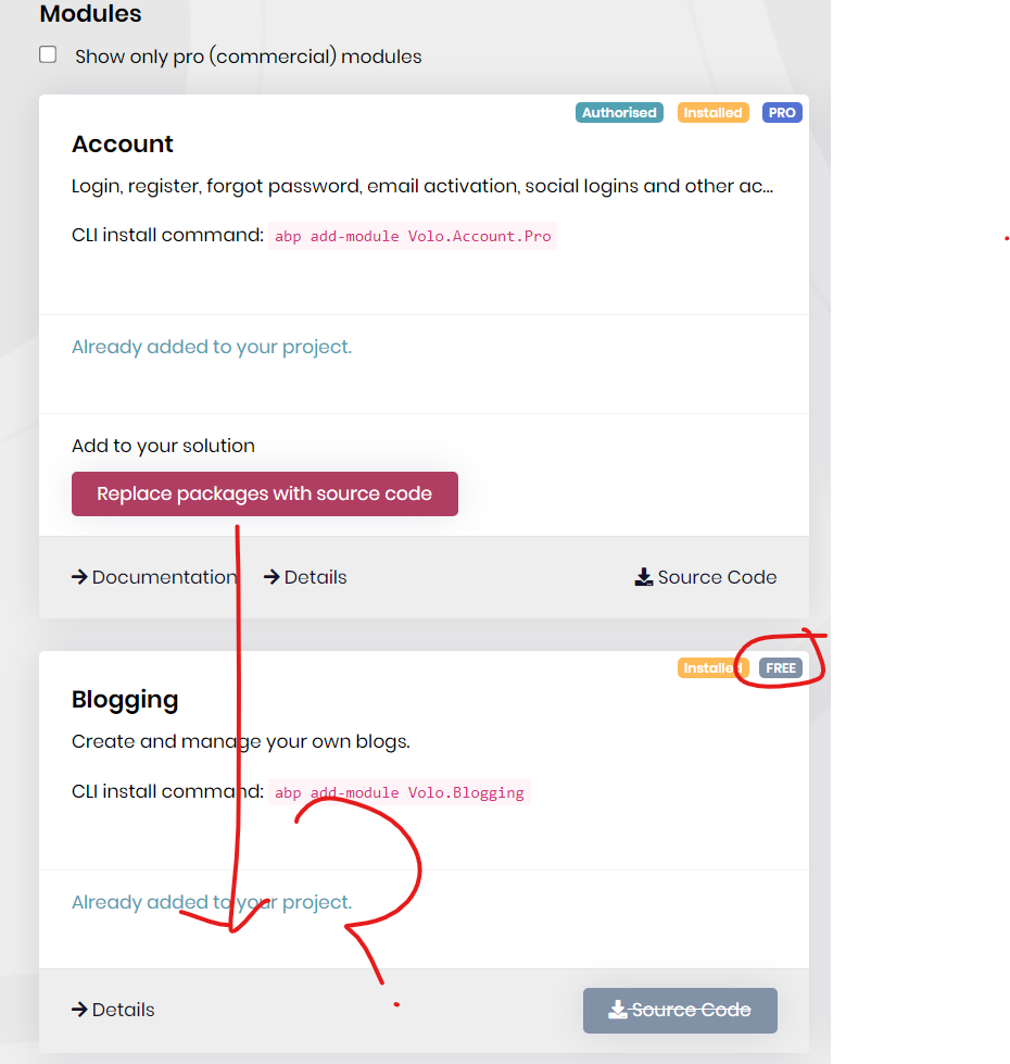abp add-module Volo.Blogging --with-source-codecommand to install the module with source code.