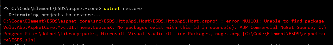 - Exception message and stack trace: Unable to find package Volo.Abp.AspNetCore.Mvc.UI.Theme.LeptonX