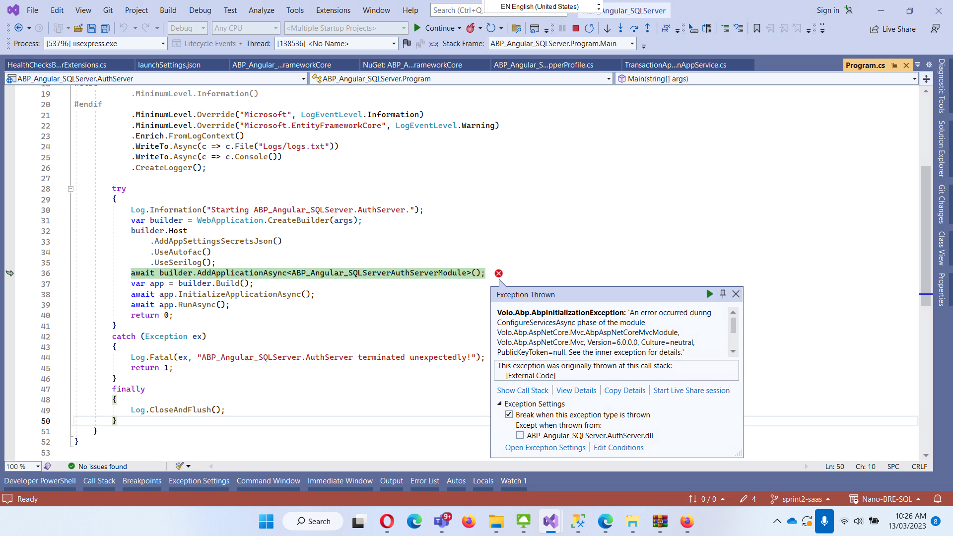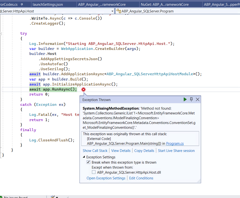 We try to upgrade our project using the update Nuget packages menu from apb commercial account after upgrading we couldn't lunch the project and there was a package version conflicts but it's inside the volo packages so we couldn't upgrade them manually please see the exception images