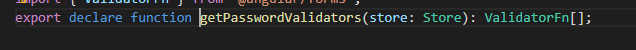 Hi , I get following error and when I check the getPasswordValidators method saw that it expects the Store type object , could you please check it too?