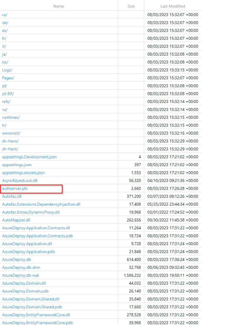 My authserver.pfx file is in the same location as yours. Microsoft setup my web app on Microsoft Windows NT 10.0.14393.0. As you can see in the screenshot, it is a 32 bit environment. I am running on a Shared (D1) development instance.