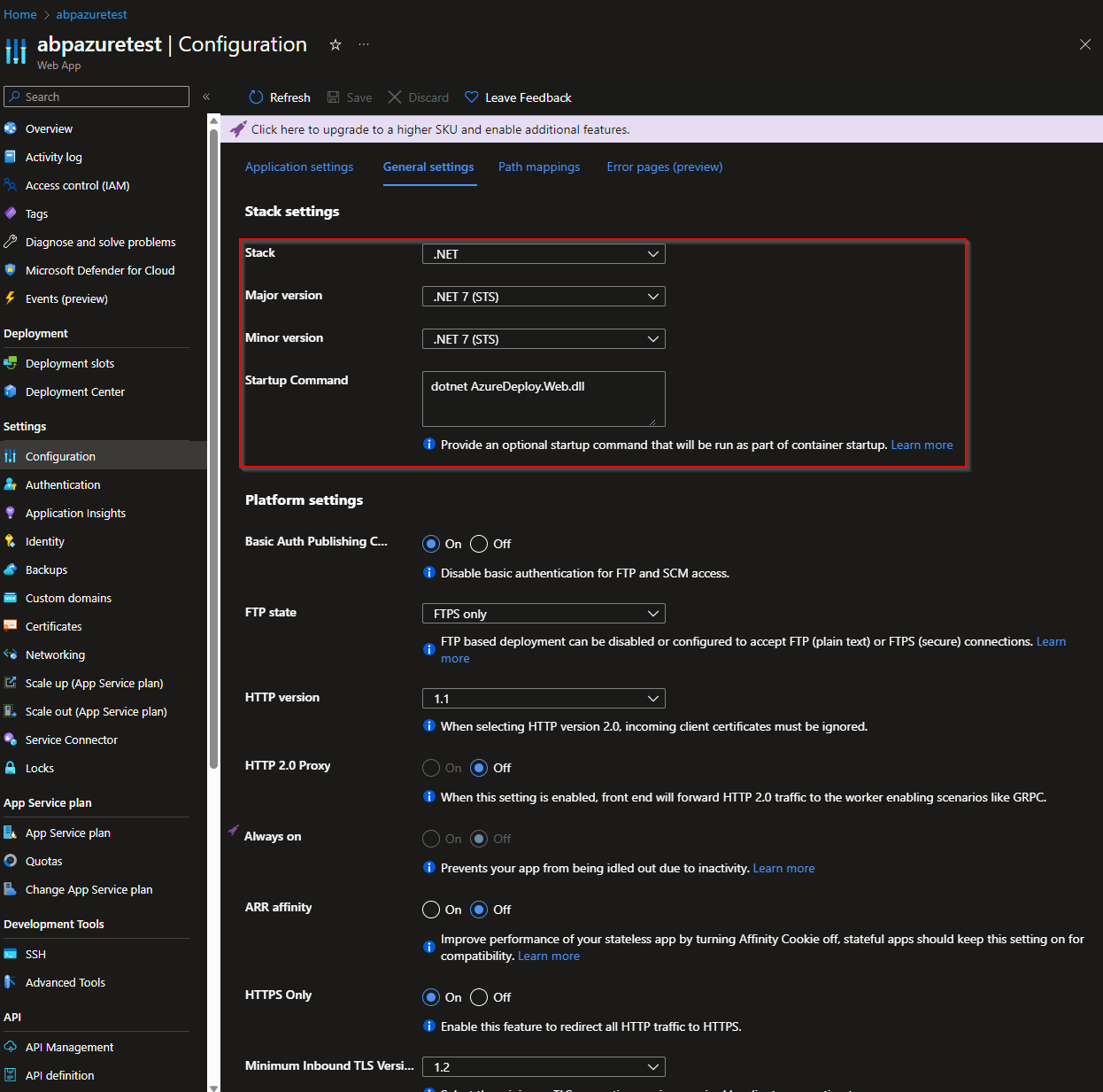 You might want to checkout this: https://codejack.com/2022/12/deploying-abp-io-to-an-azure-appservice/