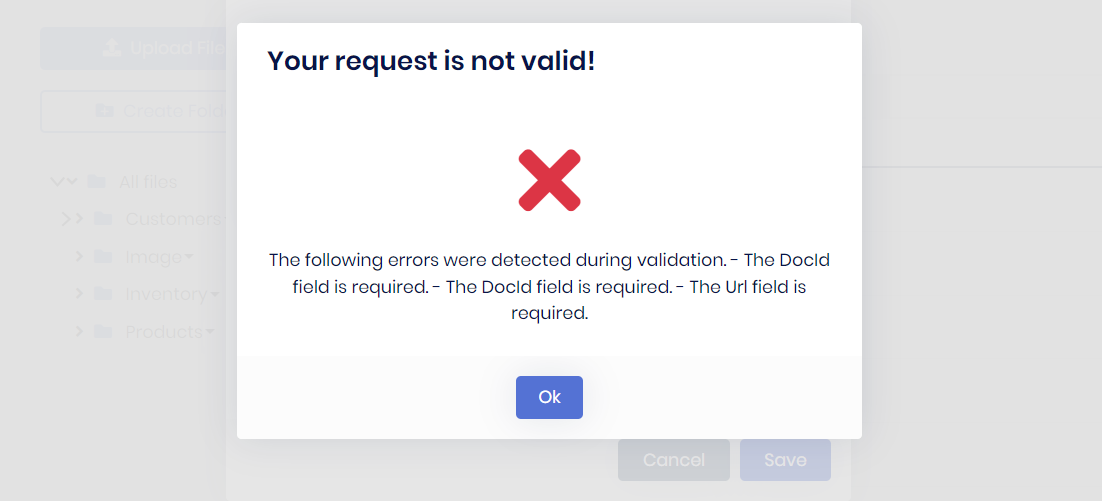 I have checked your code I think you are not passing that value from File Management Module UI, you need to remove that properties like shown in screenshot.