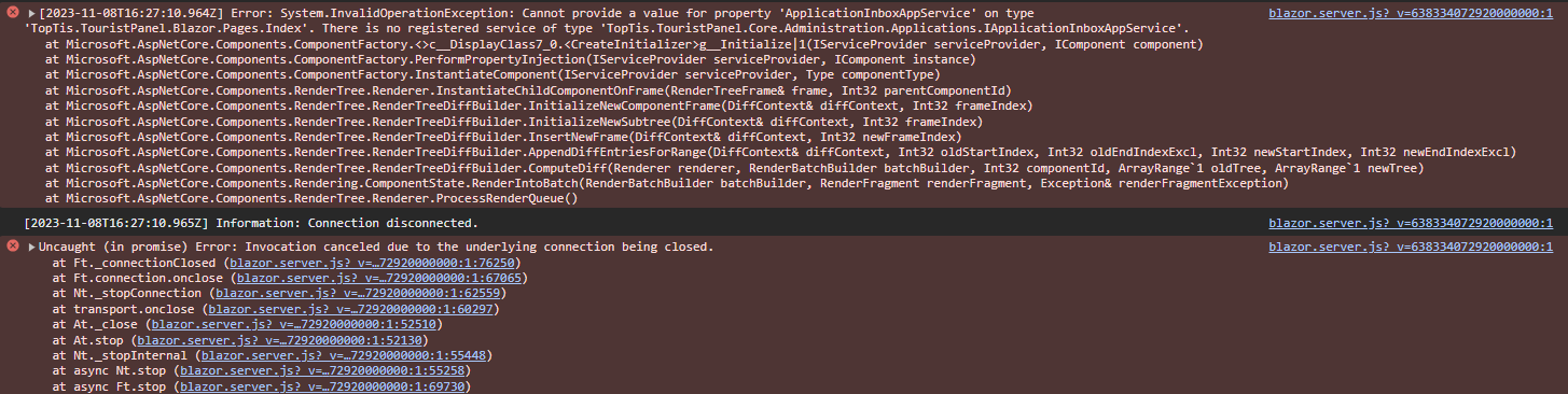 when I injected abp based interface (like IBlogAdminAppService) everything worked fine but when i injected my IApplicationInboxAppService (My Service) gave me this error