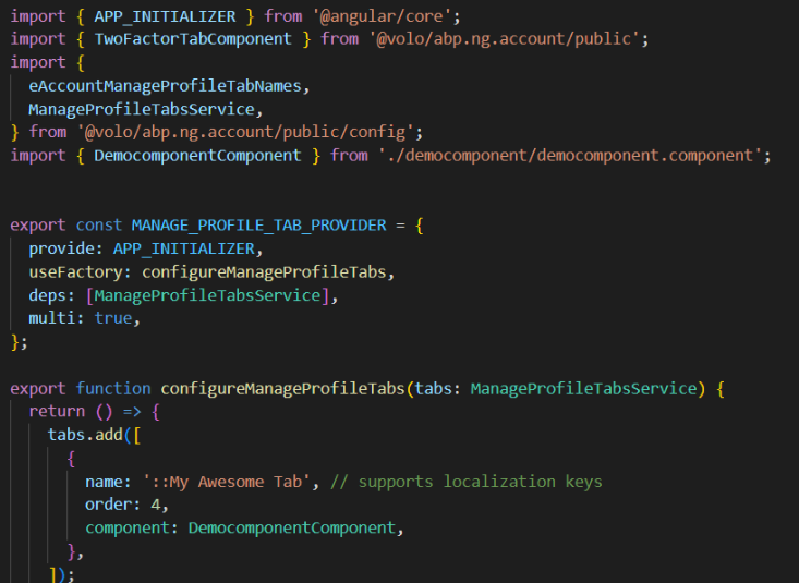 manage-profile-tabs.provider.tsfileadd the newly created DemoComponent to this file like