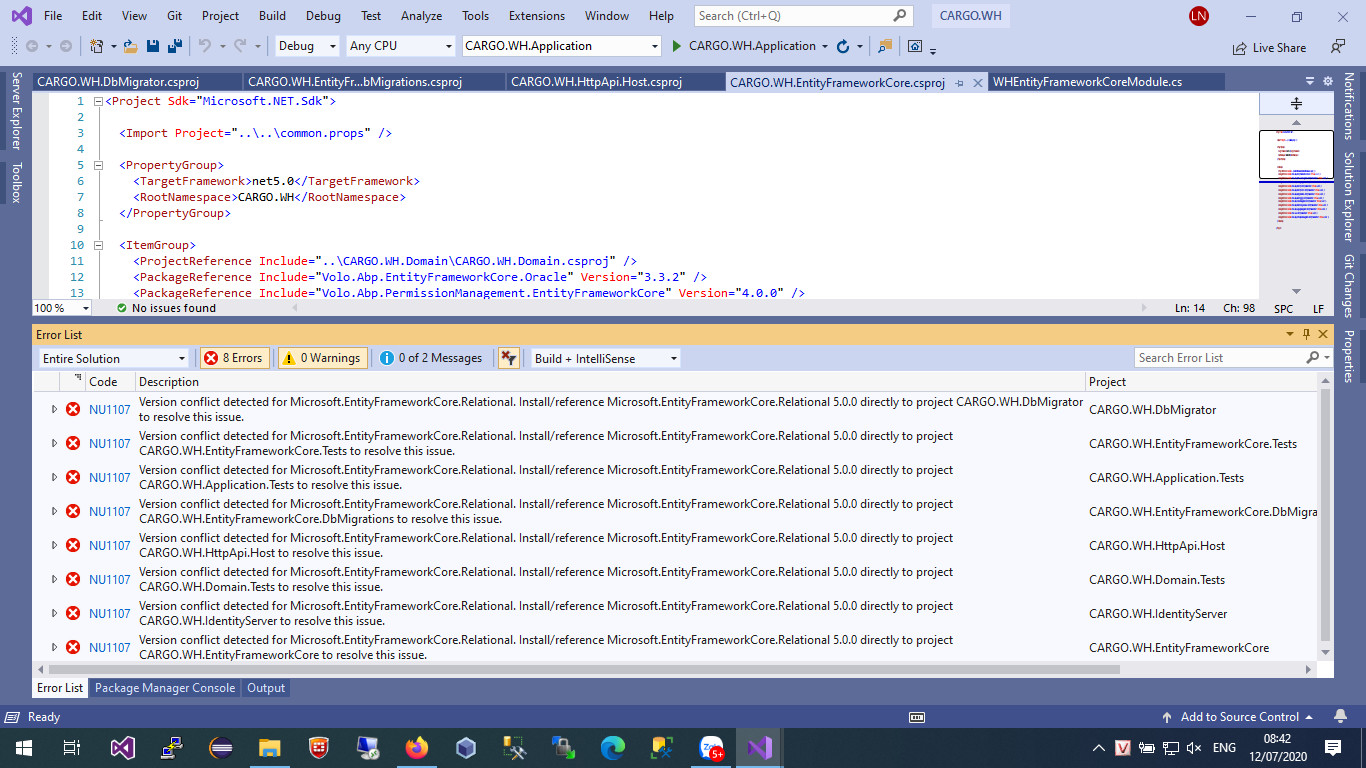 Oracle.EntityFrameworkCorehas not to support net 5.0 yet. We will publish this package immediately when it is available.https://www.nuget.org/packages/Oracle.EntityFrameworkCore/ https://github.com/oracle/dotnet-db-samples/issues/81