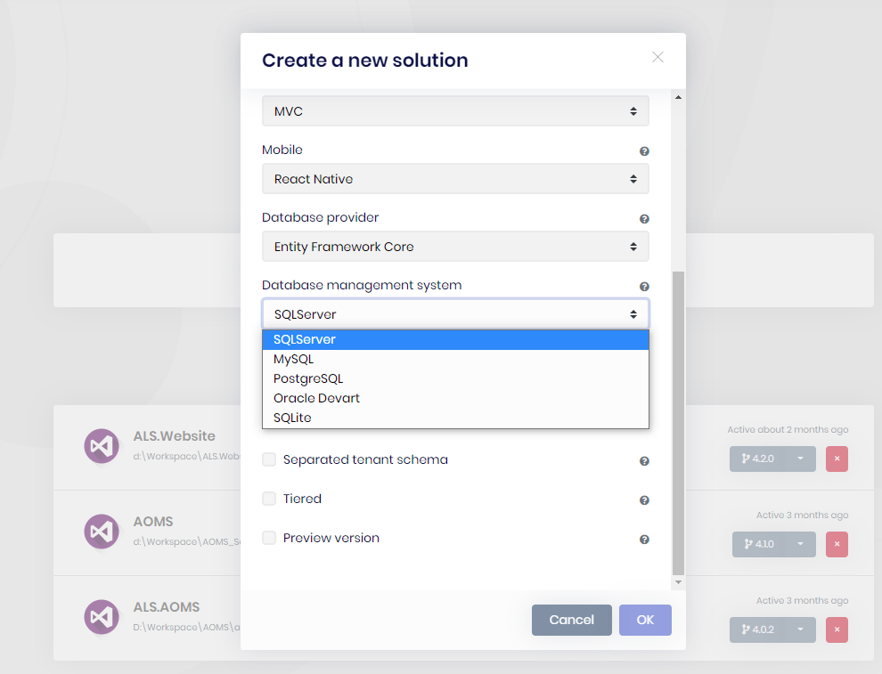 abp new Acme.BookStore -t app-pro -u mvc --mobile none --database-provider ef -csf --preview --database-management-system oracle -