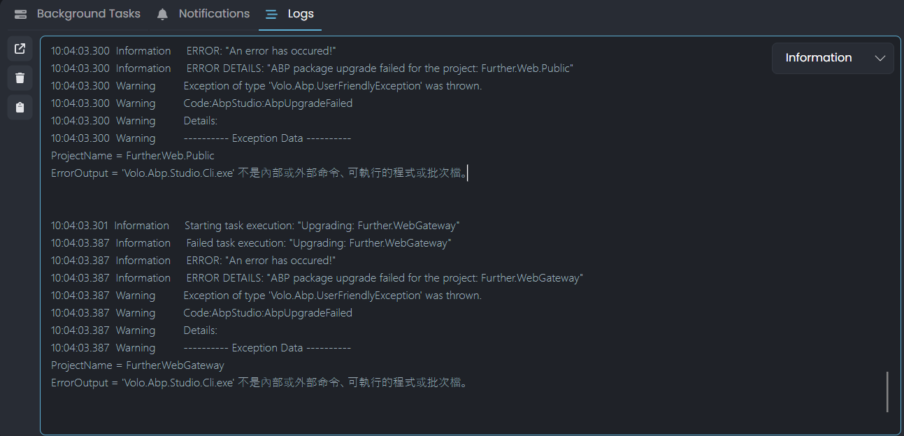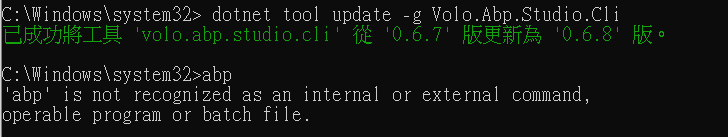 abpc.batfile from ABP Studio installation path such asC:\Program Files\Volosoft\ABP Studio. -