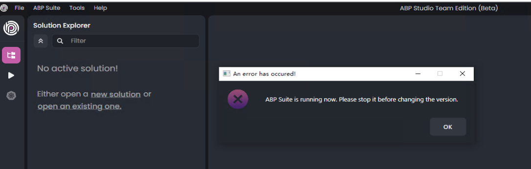 Changing ABP Suite versions may result in errors.