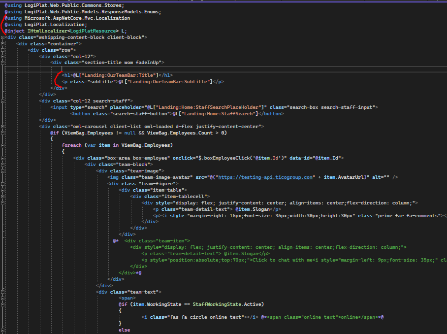Currently, I have modify the web public module, and now entire of this module is my code. So now I need to implement server side localization resources. in this code