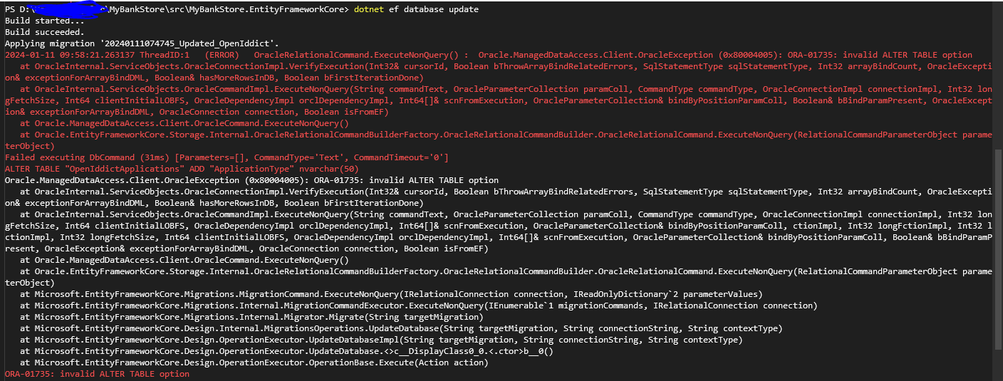 Hello, I successfully moved my project from .net 7 to .net 8. My problem occurs while updating OpenIddict. When I run migrate, it gives me an error like this: