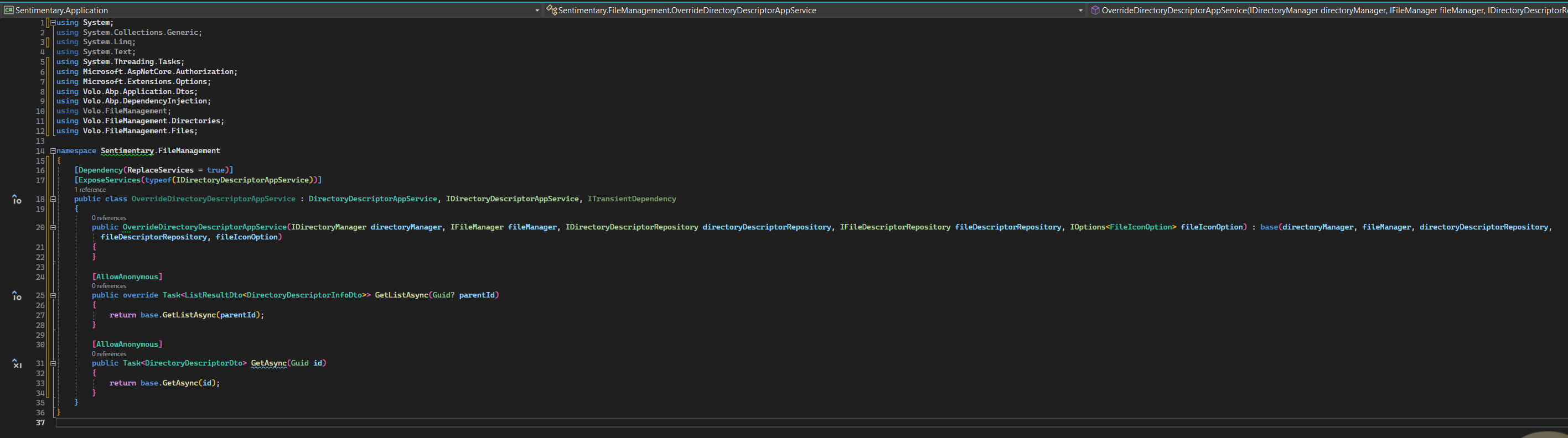 The way I'm currently implementing fetching and displaying the items would require me to override both IFileDescriptorAppService and IDirectoryDescriptorAppService - so I really hope there is a cleaner way to do it.