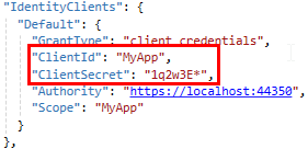A similar question concerns the credentials of a client that accesses via the HTTP API. As background info: The client runs as a Windows service. Here ClientId & ClientSecret are currently in the appsettings.json file.