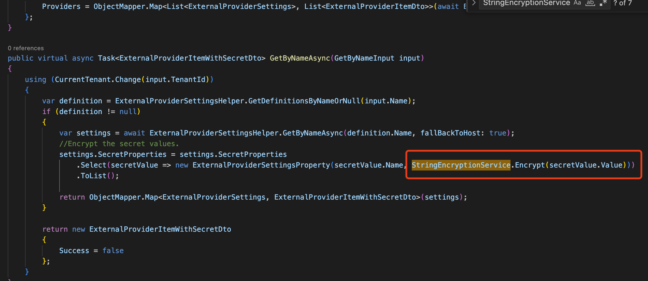 Actually, ABP decrypts the ClientSecret internally but doesn't encrypt the storage, which is strange.