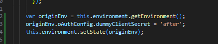 After update the dummyClientSecret by setState function of EnvironmentService, the login function throw the exception relative to the tokenEndpoint.