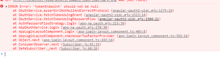 I got this error when login, the login method of ABPOAuthService throw exception for not find the token endpoint