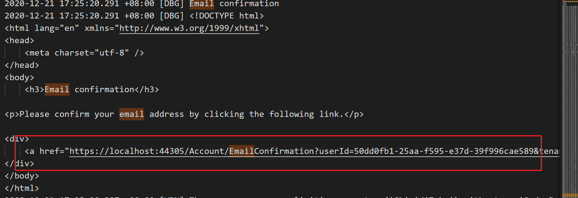 - I working demo project of abp.io. when i verify email, i got mail when i click on confirm email address i got "This page isn't working now" error.