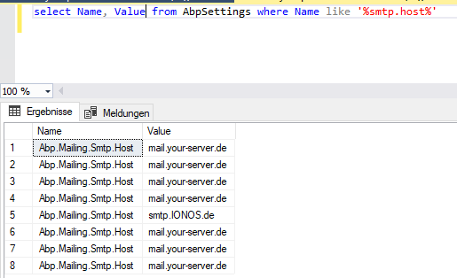 I can't find definitions for Strato SMTP server anywhere - neither in the tenants' email settings nor in the database tables (AbpSettings, AbpSettingDefinitions).