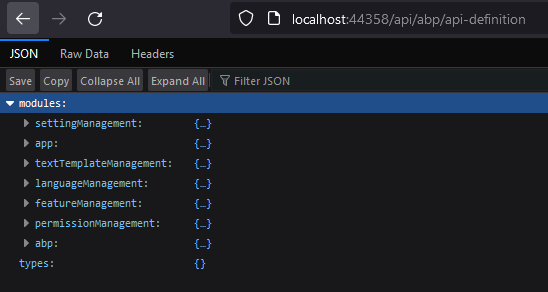 I notice that it is targeting http://localhost:44357/ which is the Web project. Looking at the api/abp/api-definition endpoint shows that the MyService module is not being surfaced here.