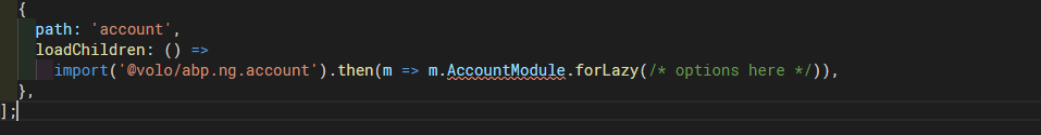 AccountRoutingModulehas been removed. So you have to remove the 'account' path from yourapp-routing.module.tsif you are using the v4.x packages. (remove below element){ path: 'account', loadChildren: () => import(... }For your second question