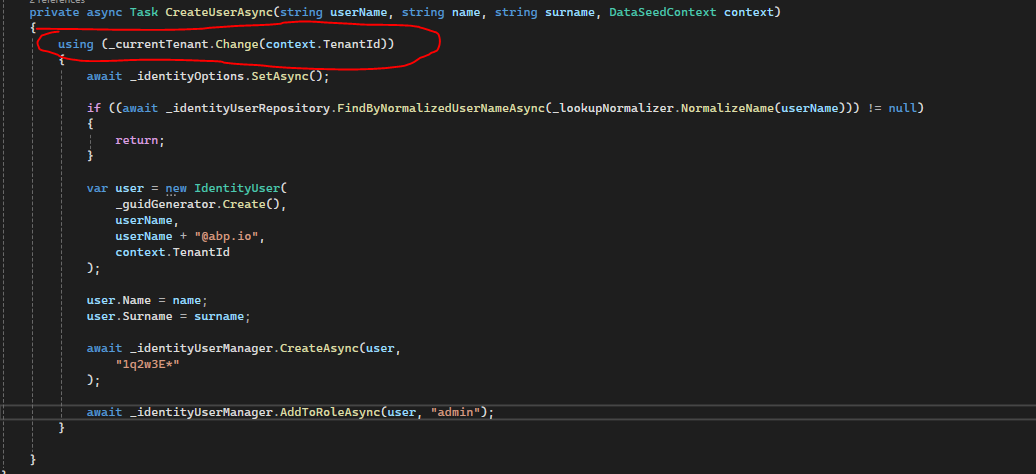 4. I've changed the TestApplicationNet8SampleIdentityDataSeeder on AuthServer project to seed the users when the tenant is created
