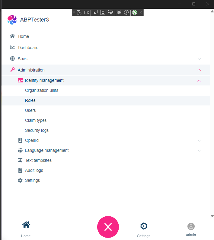 There seem to be a problem with the compact menu in Lepton that when you select a menu item, it will go to that page but it won't close the menu itself which continue to hide most if not all of the page behind it making you thing that nothing happened. If you however press the large X, you can see that the selected page is in fact loaded. When screen is wide enough to display the normal sidebar, this works as it should (even with auto collapse enabled). This is how it looks even after I have selected "Roles" and that page is in fact loaded behind the menu.