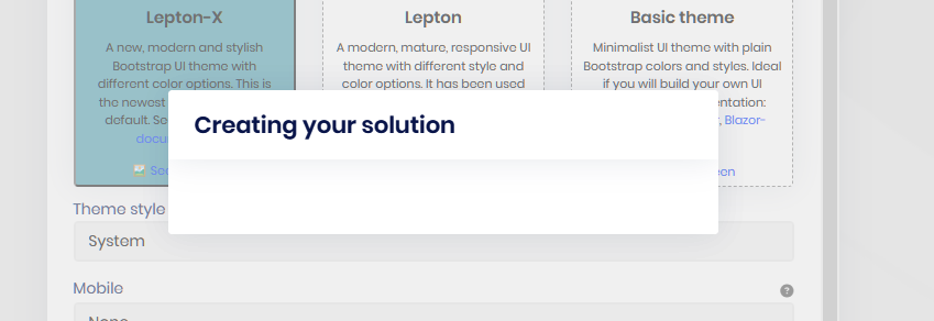 When creating a new Blazor WASM in ABP Suite you get