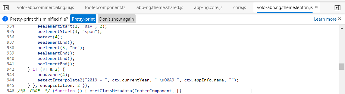 export class AppComponent { constructor(private replaceableComponents: ReplaceableComponentsService) { this.replaceableComponents.add({ component: FooterComponent, key: eThemeLeptonComponents.ApplicationLayoutFooter, }); } }
