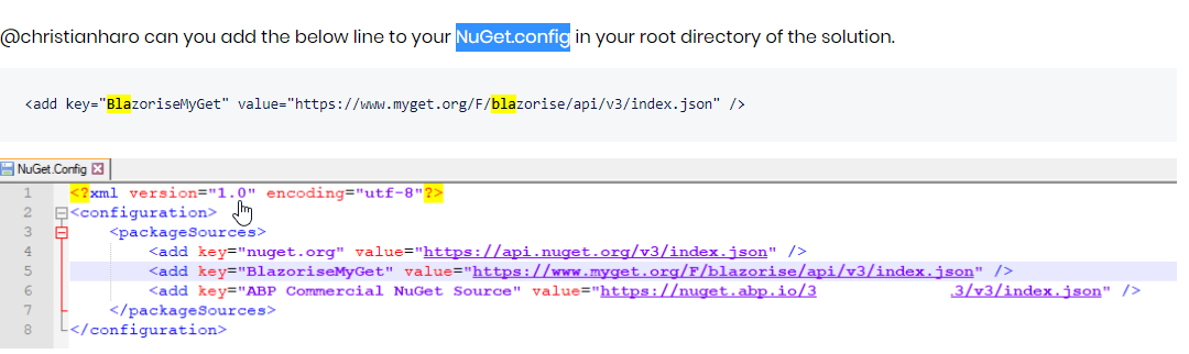 Hello, found the item you refered to to fix Blazor. I am expected to add an entry in the Nuget.config