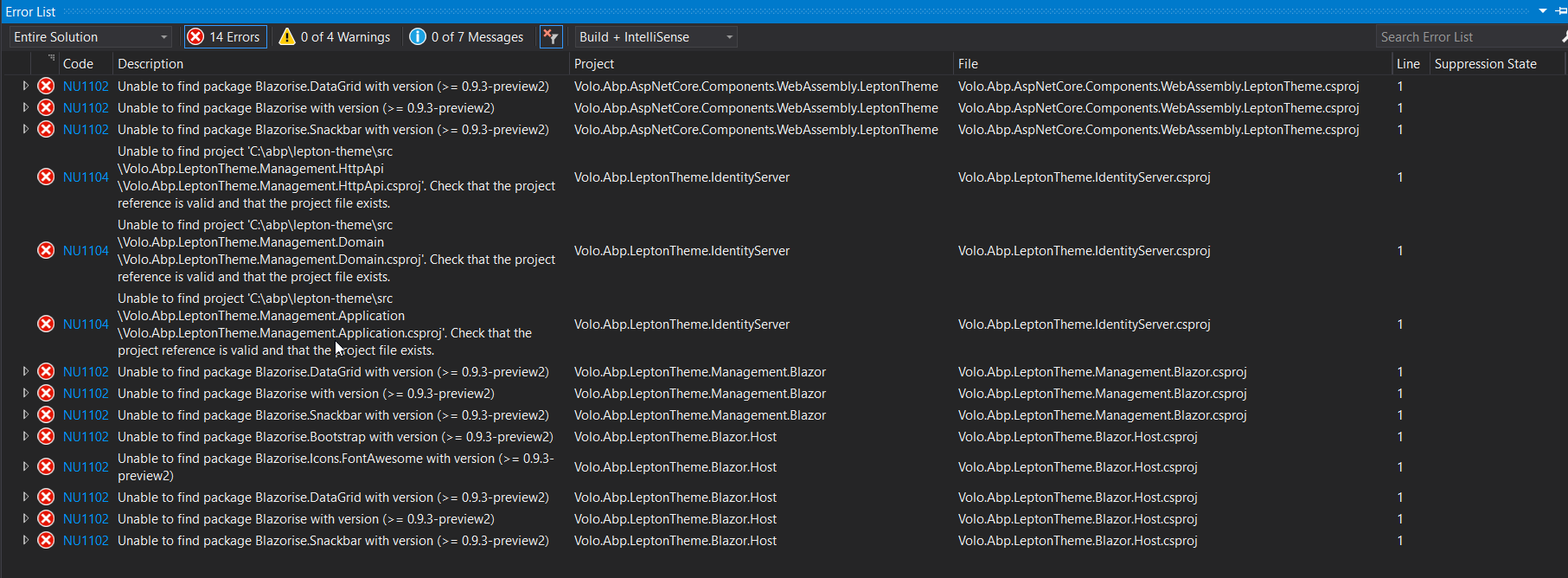 How do I download the source code? Using this command? abp get-source Volo.LeptonTheme. If yes I did this and ran into build errors detailed above. I tried to install the blazor packaages to resolve the errors, but it did no work