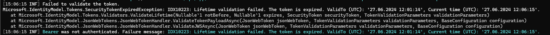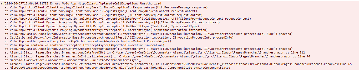 Hi, After access token expire, there is no activity on Blazor UI. At any user activity like navigating a page, a yellow alert appears at the bottom of page. User can not do any activity, until hard reload. Access token lifetime expires regardless of user activity. We expect that user must be sent to login page or token must be refreshed if access token is expired.