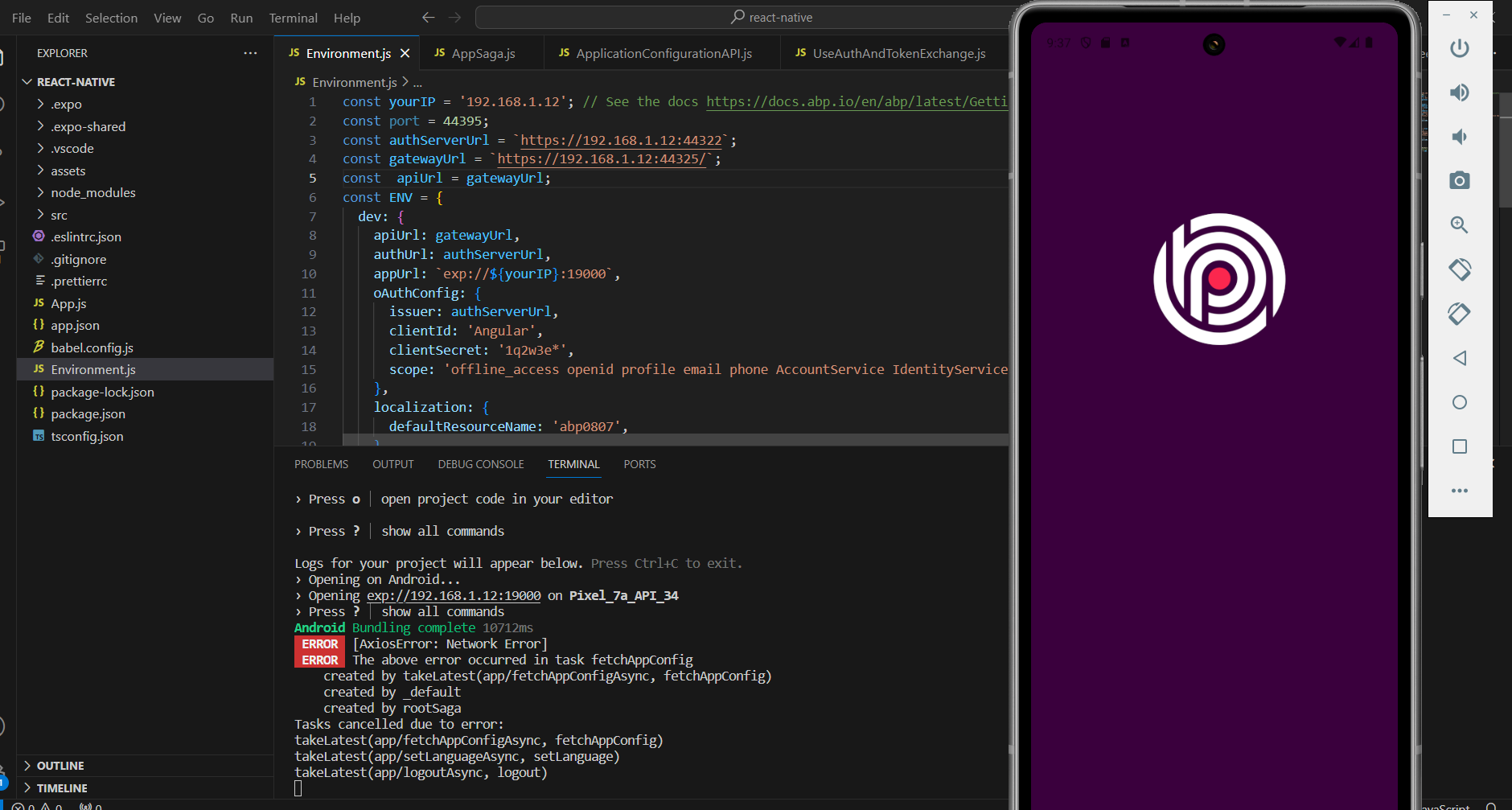 const yourIP = ' 192.168.1.12'; // See the docs https://docs.abp.io/en/abp/latest/Getting-Started-React-Native?Tiered=No const port = 44305; const apiUrl =