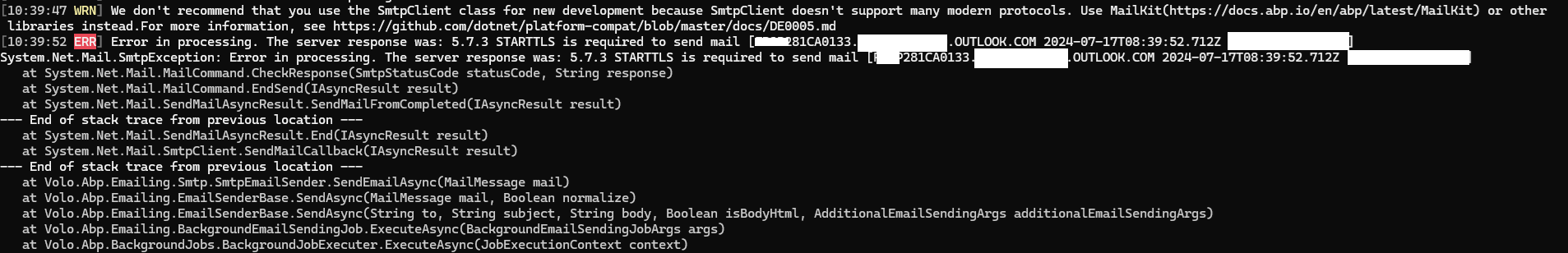 Even though I installed Mailkit and related packages in the AuthServer project, the Account module still uses SmtpClient instead of Malkit.
