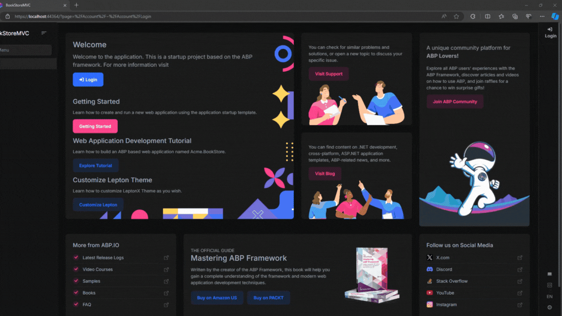 Hello Sumeyye, I apologize for my incorrect expression. Can you please try the same test by entering this address: https://localhost:44326/account/login instead of http://localhost:4200. (Do not start the Angular project)