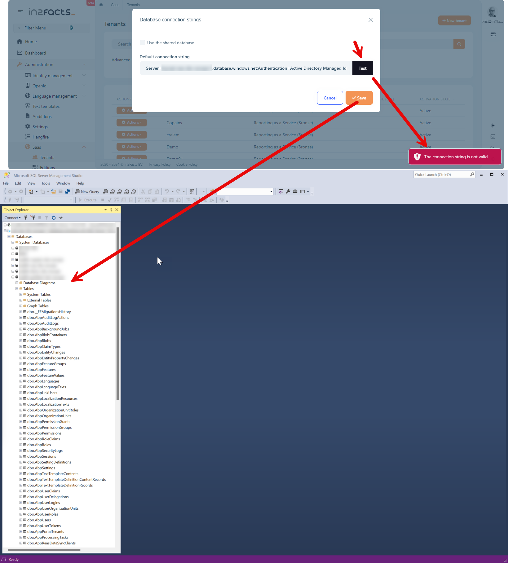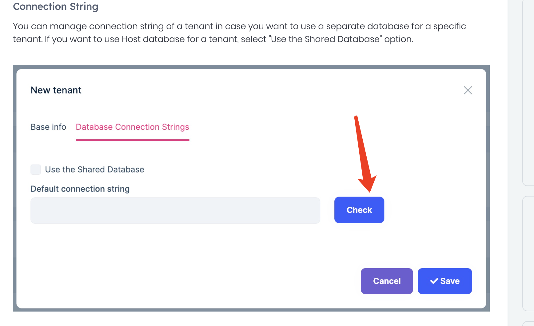• Which validations are done by the ABP Framework (Commercial) that I'm getting an error saying that my connectionstring is not valid? Its seems to come from Volo.Saas.Host.TenantAppService.CheckConnectionStringAsync(String connectionString)