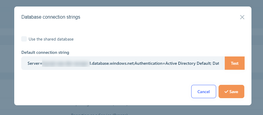• Steps to reproduce the issue: I have my application deployed on an Azure App Service. My App Service Managed Identity is added to the database (ddl_admin, reader & writer) I want one of my tenants on a separate database. I've entered the following connection string: Server=