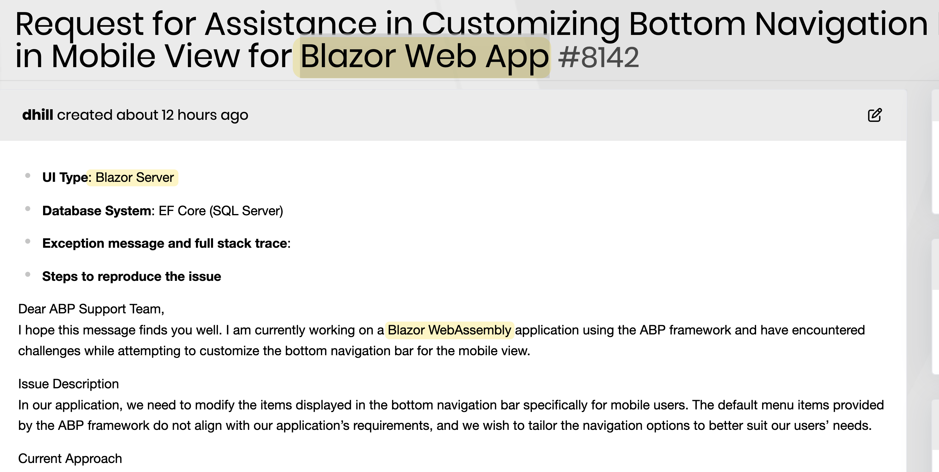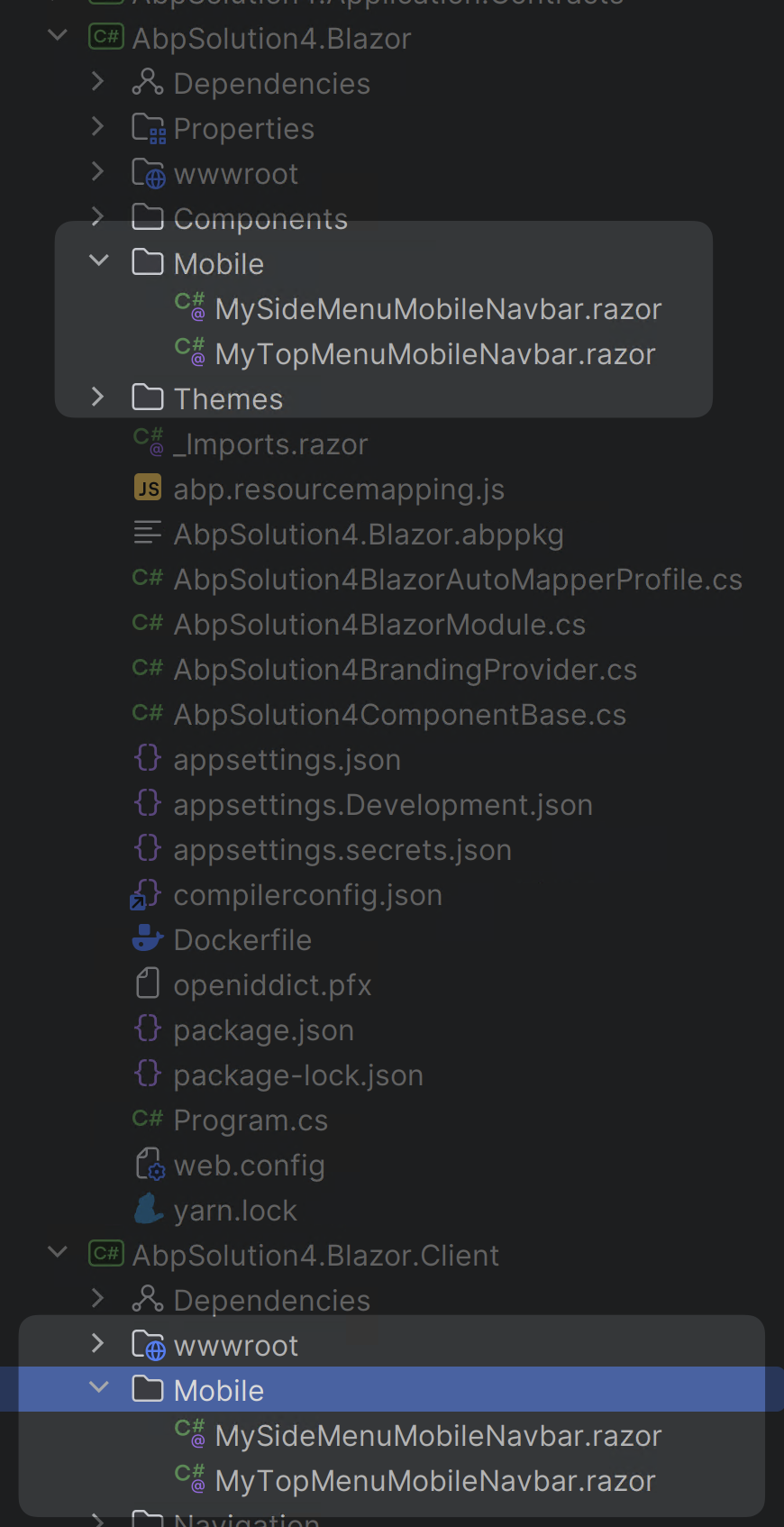 Dear ABP Support Team, I hope this message finds you well. I am currently working on a Blazor WebAssembly application using the ABP framework and have encountered challenges while attempting to customize the bottom navigation bar for the mobile view.