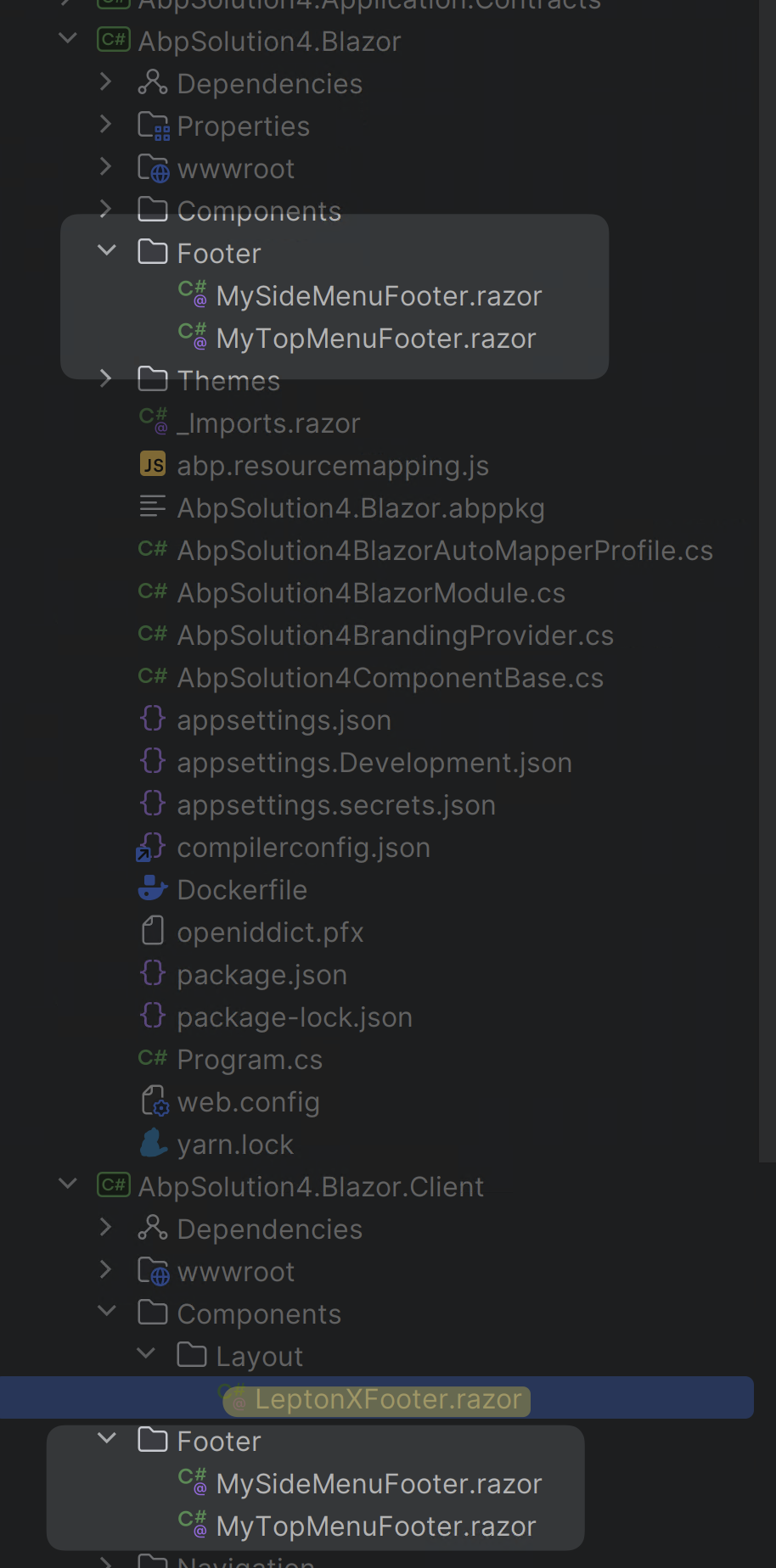 LeptonXFooter.razorin your Blazor.Client project, Please remove it. -