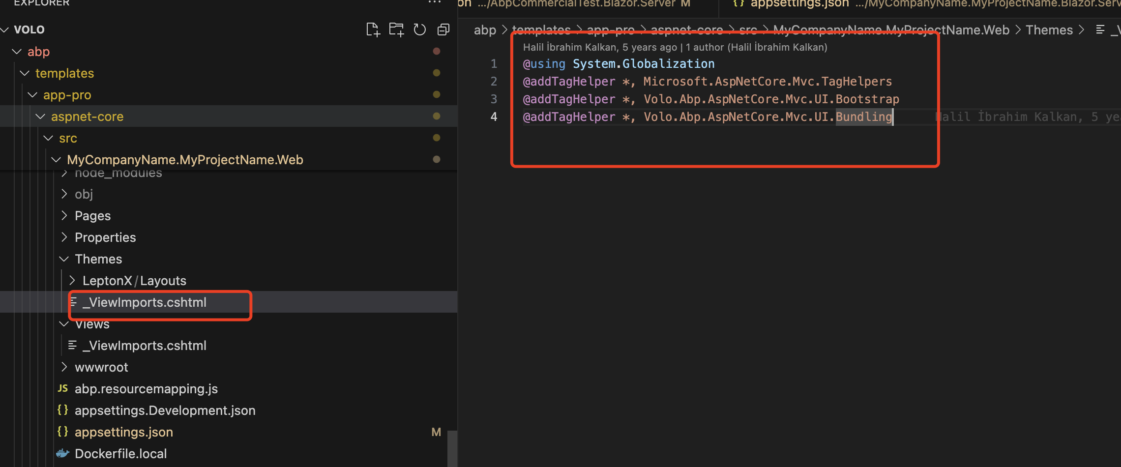 _ViewImports.cshtml@using System.Globalization @addTagHelper *, Microsoft.AspNetCore.Mvc.TagHelpers @addTagHelper *, Volo.Abp.AspNetCore.Mvc.UI.Bootstrap @addTagHelper *, Volo.Abp.AspNetCore.Mvc.UI.Bundling -